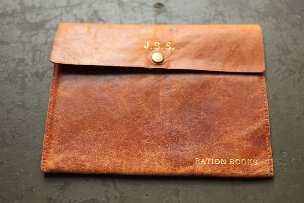 One of my early collectable items were war ration books from WWII. During the war, the U.S. government set up roughly 8000 war ration boards to control the consumption of strategic materials like gasoline, rubber, sugar, meat, butter and so on. The ration boards issued every family ration books to ensure equality and control those crucial items. It is those types of civilian war time ephemera that has long been a source of interest and intrigue for me. In college I took a lot of classes centered around the second world war and the home front was frequently discussed. V-Mail was another favorite WWII collectable. I still have deadstock boxes of V-Mail forms that I own to this day. For my most recent birthday my grandmother (knowing of my interest in old WWII stuff) sent me an old leather war ration envelope that she found. The soft leather envelope is still embossed with the initials “J.B.S” in gold lettering and fits two ration books perfectly. Sort of a funny thing to use, a leather ration envelope. It makes you think that during those days the war was not a short term thing and government rationing was a real part of daily life.