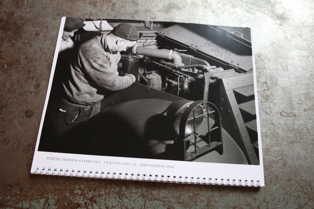 During the 1930s the U.S. Government commissioned a huge photography project to document the Great Depression and in doing so created some of the most iconic and enduring images of American life. I really fell in love with a set of photos of the White Motor Company from my hometown of Cleveland, Ohio and I thought it would be cool to make my own personalized calendar from the images. Lucky for me the files are available in high enough resolution to print a normal size calendar through the Apple printing service. I selected about 14 of my favorite pictures (which seem to be copyright free, at least for this clearly non-commercial use) laid everything out in iPhoto and submitted the job straight through to Apple. About two weeks and $28 later I was in business.