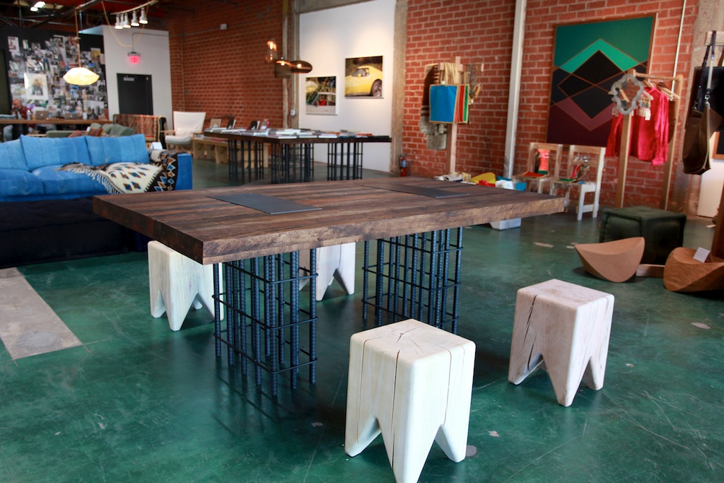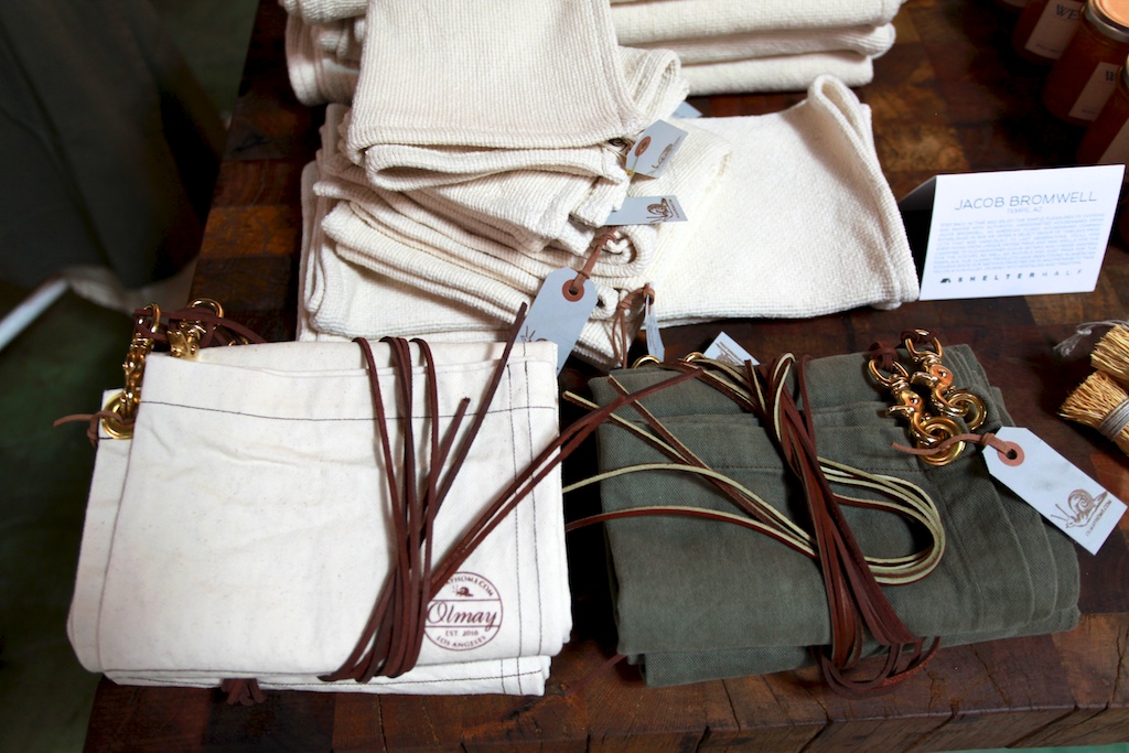 Out in L.A. last week, my buddy Nick Maggio took me on a little retail tour of a burgeoning stretch of South La Brea. First stop? The temporary retail spot Shelter Half which is organized by Environment furniture’s Davide Berruto (with some assistance from Mr. Maggio and others). The shop is a mix of clothing, objects, furniture, leather goods and vintage books – all under the concept of made in America. Brands like RTH and Save Khaki (among many others) are involved and have set-ups within the big open space that is loosely divided up between brands. The shop is an interesting mix of stuff and feels more crafty than heritage-y (not a word, I know), which is refreshing.