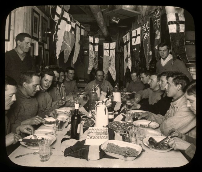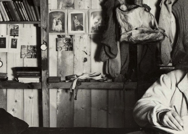 We started at 7:30, none of us having slept much after the shock of our discovery….; the wind is blowing hard, T. -21°F, and there is that curious damp, cold feeling in the air which chills one to the bone in no time…. Great God! This is an awful place and terrible enough for us to have laboured to it without the reward of priority. Well, it is something to have got here, and the wind may be our friend tomorrow. We have had a fat Polar hoosh [food in liquid form, typically made of lard, oatmeal, beef protein, vegetable protein, salt, and sugar] in spite of our chagrin, and feel comfortable inside–added a small stick of chocolate and the queer taste of a cigarette brought by Wilson. Now for the run home and a desperate struggle. I wonder if we can do it.