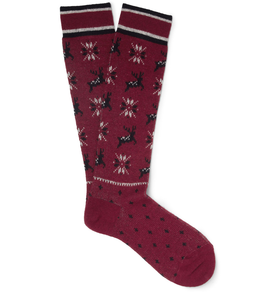 White Mountaineering: If there’s one brand that sparked the Japanese sock movement, it’s the pattern obsessives over at White Mountaineering. While their Fair Isle knits were a big hit in previous seasons, these Norwegian inspired Reindeer print socks are just impossible not to smirk at.